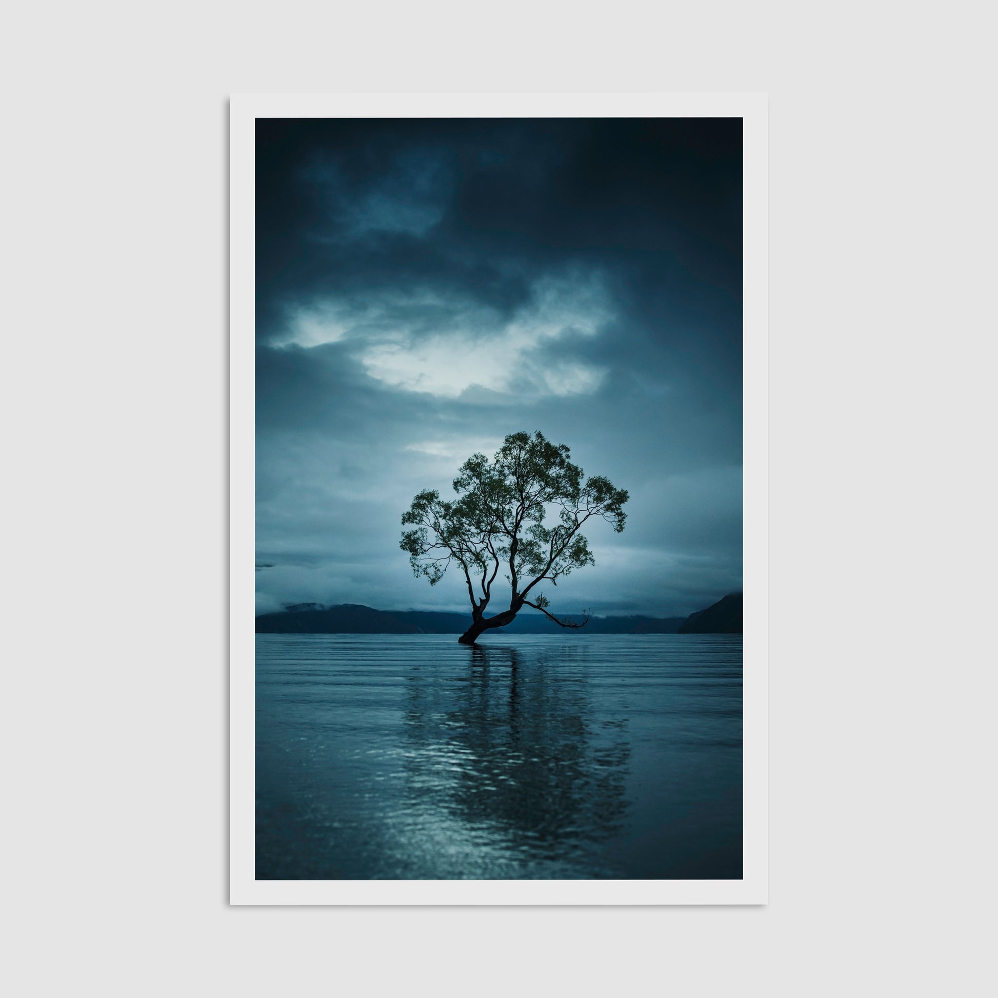 A moody evening looking out at That Wanaka Tree in Wanaka, South Island New Zealand.